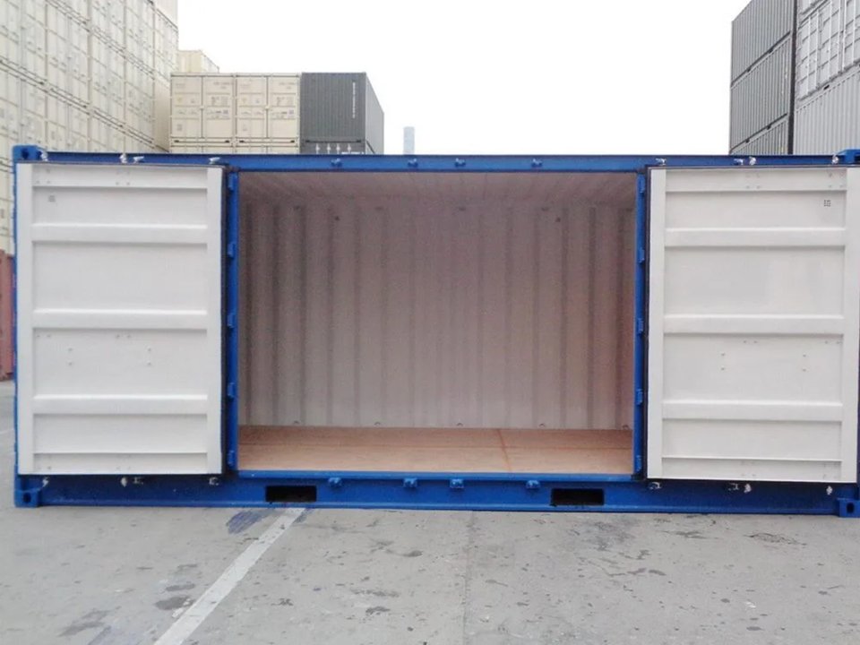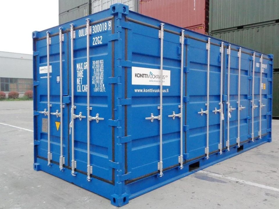 Our 20ft open side shipping containers have a pair of double hinged doors along one side of the container giving full side access – as well as a pair of double doors at the end.