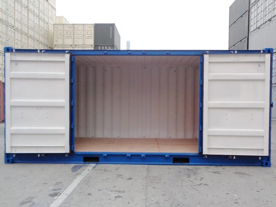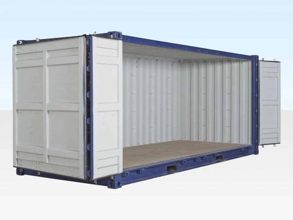 Our 20ft open side shipping containers have a pair of double hinged doors along one side of the container giving full side access – as well as a pair of double doors at the end.