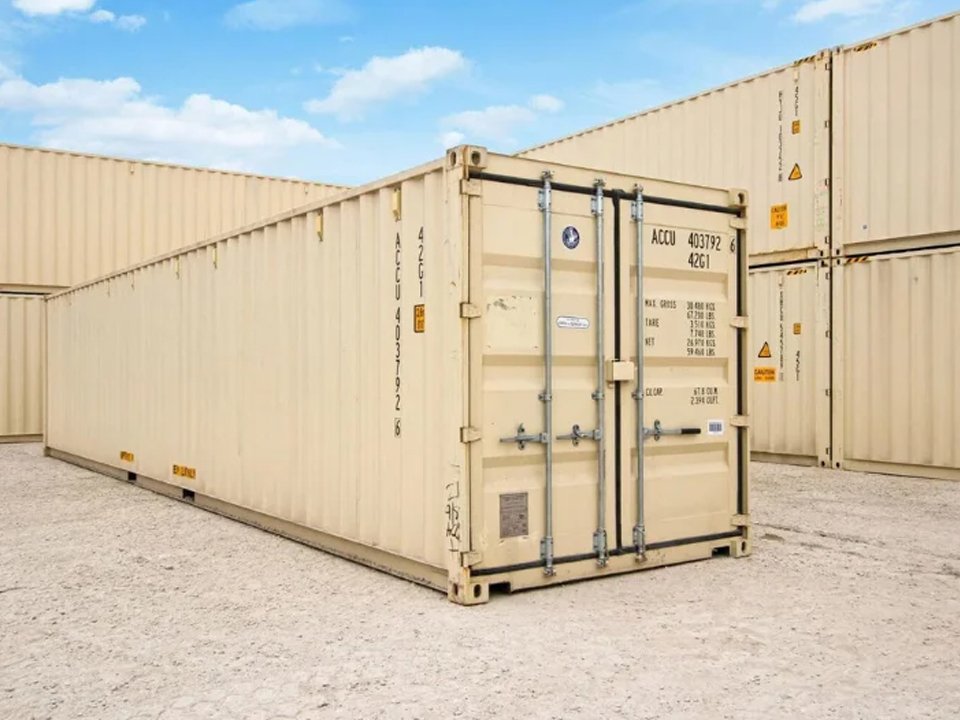 The 40′ Standard New Steel Shipping Container features a tight build to keep stored items secure from the elements. The 40′ Standard 1-Trip Steel Shipping Container features steel cargo doors, one-trip quality floors, and a clean appearance.