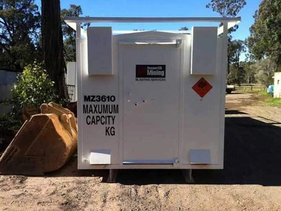 Our explosive magazines are constructed to Australian Standard AS2187.1-1998 and meet the stringent requirements of Australian Explosive Storage Regulations. The high quality relocatable explosive magazines are delivered ready-made for the storage of between 250 Kg and 20,000 Kg of explosives, detonators, MILSPEC, fireworks and other hazardous materials where safety and security is of critical importance.