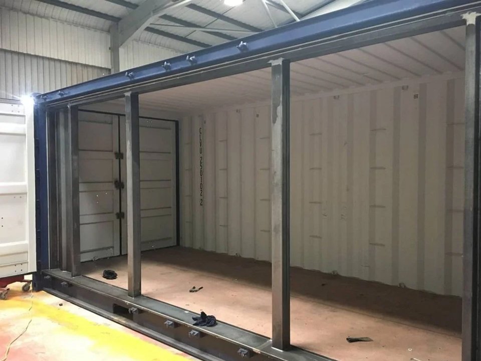 Our used 20ft open side shipping containers have a pair of double hinged doors along one side of the container giving full side access (FSA) – as well as a pair of double doors at the end.